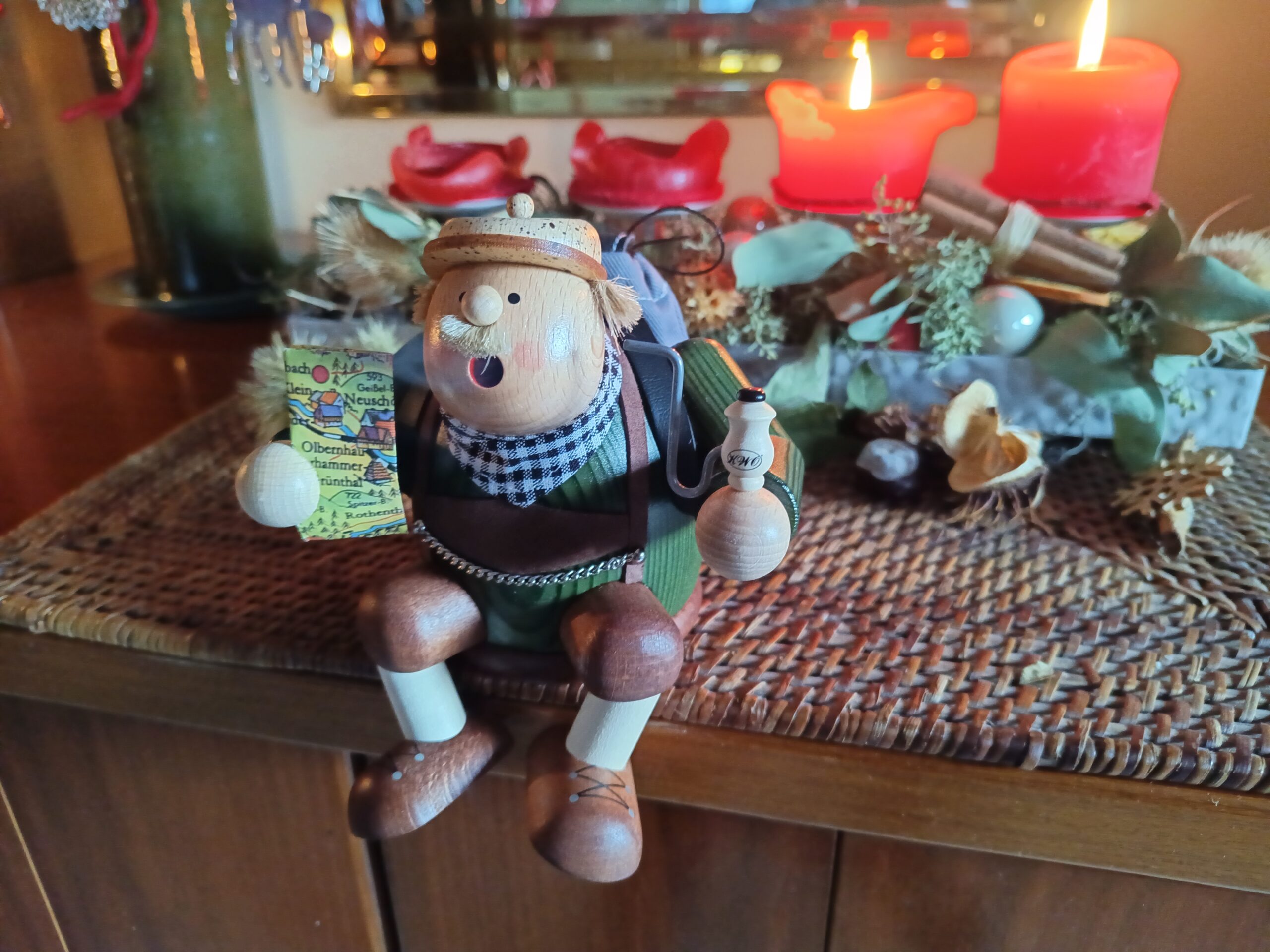Das ist Karl, mein neuer Mitstreiter aus dem Erzgebirge! Ich habe ihn vom Weihnachtsmann abgeworben. Karl ist der Meinung, er habe einen berühmten Vorfahren: Karl Stülpner. Fakt ist, den Stülpner-Karl gab es wirklich. Ob er aber wie sein hölzerner Möchtegern-Namensvetter geraucht hat, ist ungewiss. Wenn Karl mir die Bude vollqualmt, fliegt er beim ersten mal raus auf den Balkon und beim zweiten mal rein in den Karton. Dort kann er sich dann bis zum nächsten Advent überlegen, ob er das nochmal macht.
